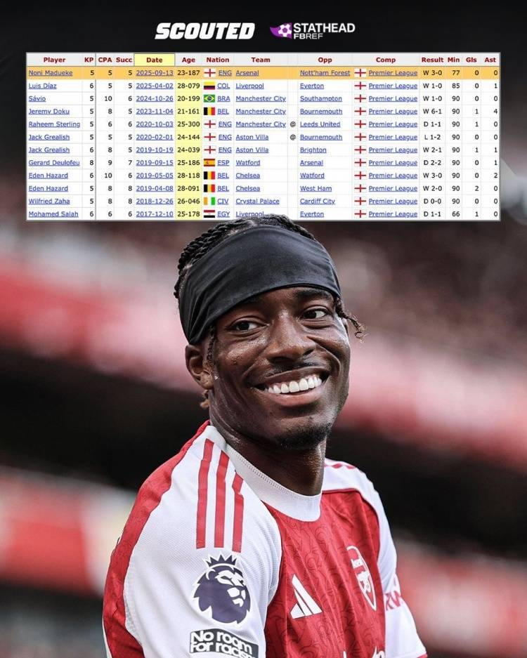 在FBRef的数据库当中,马杜埃凯也是阿森纳第一位达此成就的球员。